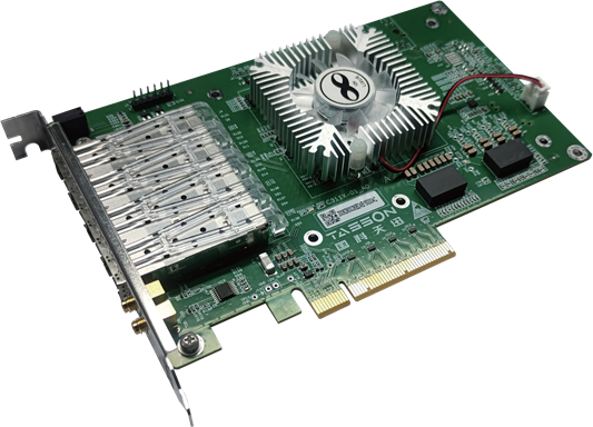 支持4路SFP+接口,速率最高支持10.3125Gbps 支持1路PCIe x8接口,向下兼容x4、x2、x1;