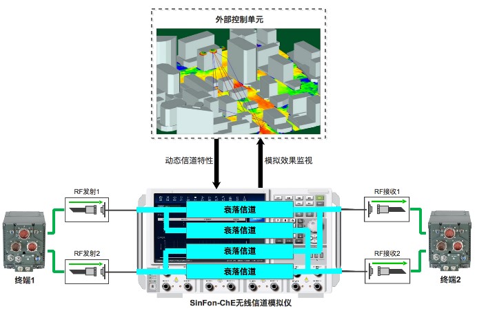 ·  在使用外部控制单元时,可通过调用信道模拟仪的实时控制实现基于试验进程的信道类型动态选择和信道参数动态修正,从而实时地接对衰落信道特征进行调整,当终端可配置时(如:使用SinFon-SDR-C/V系列终端),还可根据信道特性对通信端机工况进行更改,实现实时闭环模拟。